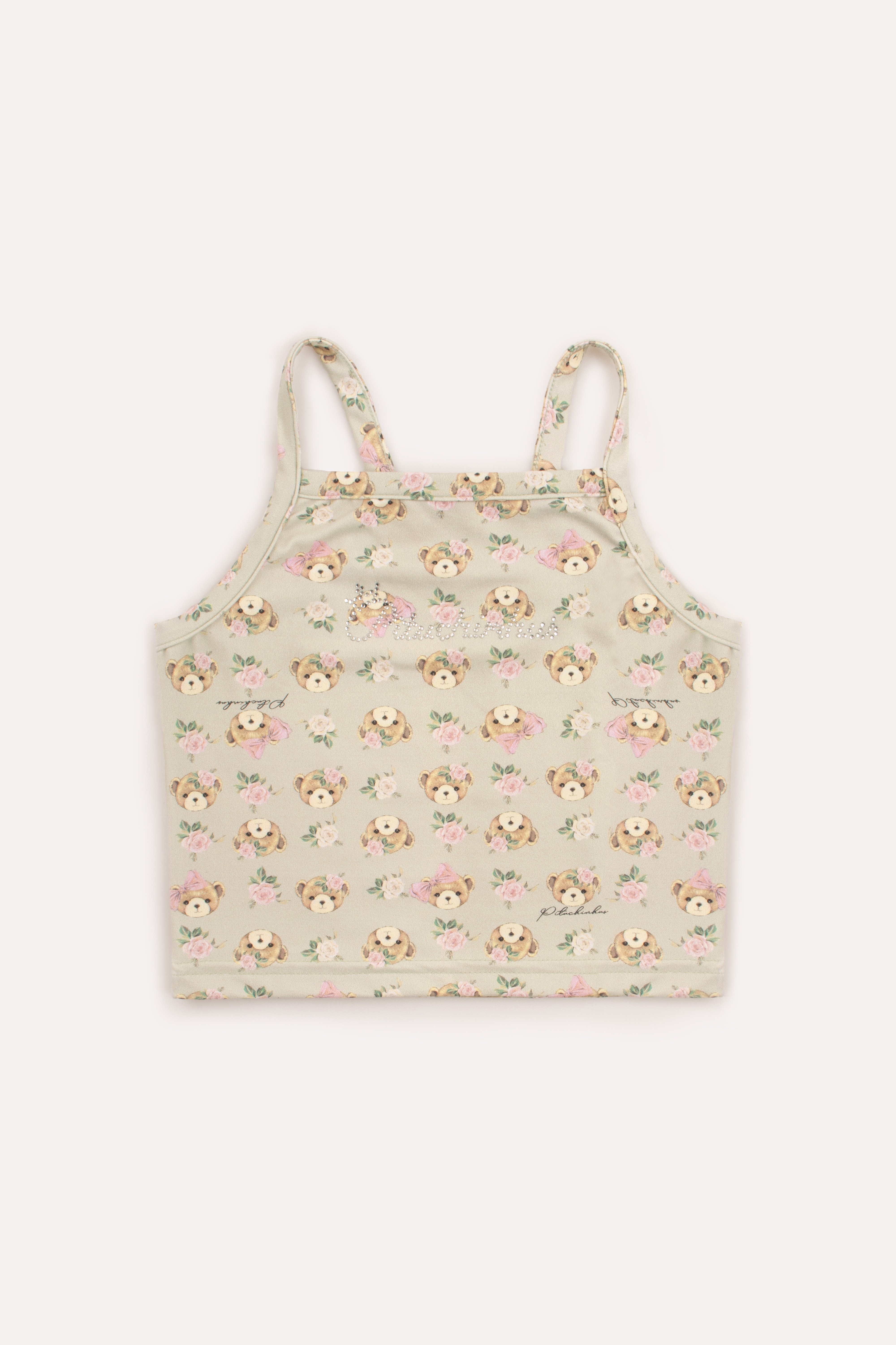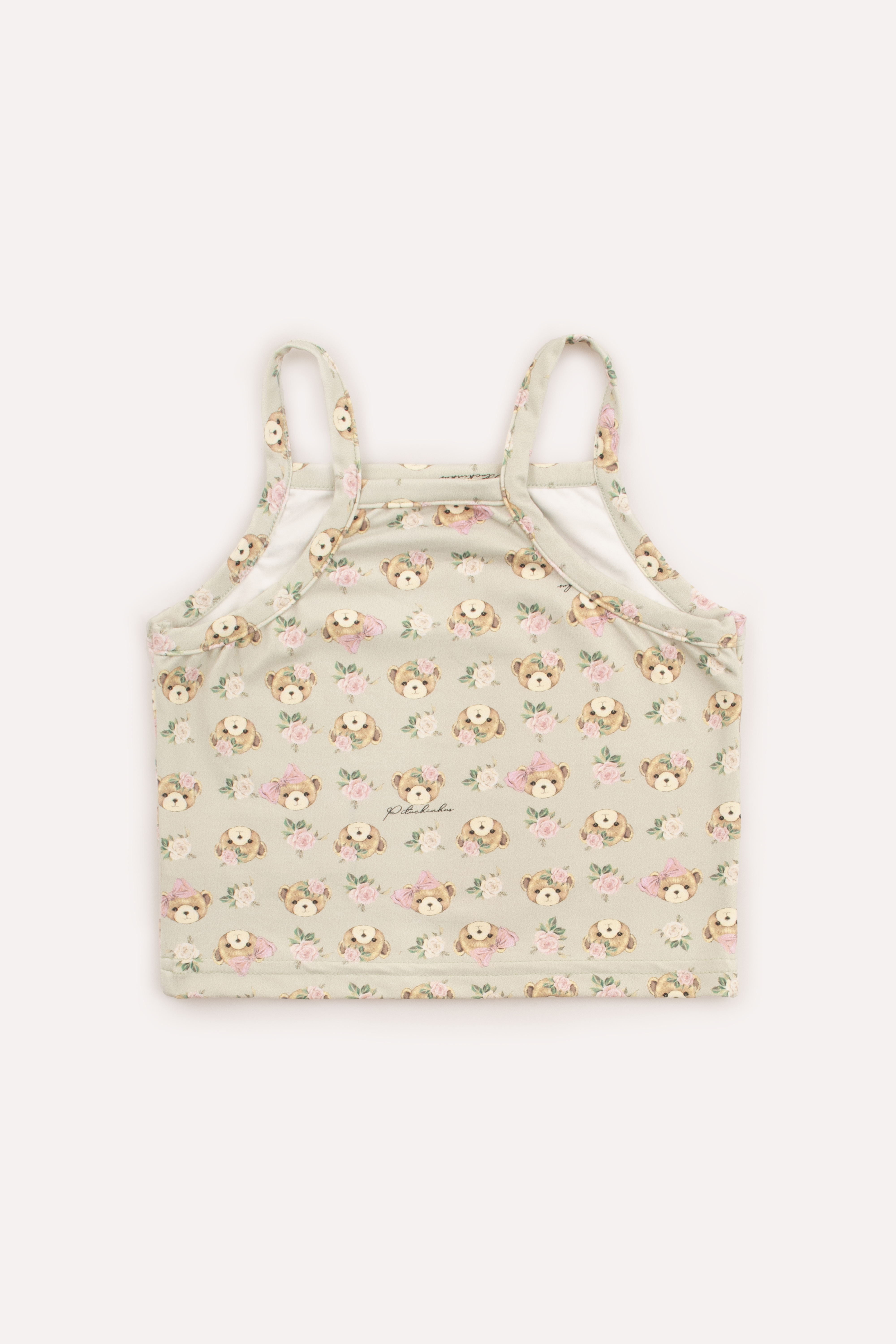 Blusa cropped alça em tecido light com aplicação da logo Pituchinhus em cristal